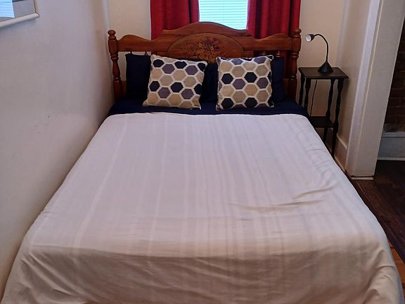 Get $100 off your first month when you sign up by Jan 1, 2024. Minimum stay is 3 month for this special discount. (Valid from 12/26/2023 till 01/05/2024) Pet friendly fully furnished home, central air, in unit washer/dryer with a full kitchen, washer and dryer in the house . Up to 3 furry friends are welcome. The beds have linens and mattress kitchen has all you need to cook, tv in sitting room There is a small fenced area at the back that is about 6ft long by 6ft wide and 12 feet tall. Minimum stay is 3 months but will consider less. You can stay longer than 3 months. The space: There is a living room with a nice comfortable sofa and a pull out full sleeper sofa in the sitting room and a Roku TV and Wi-Fi internet is provided. Space: Bedrooms, Bathroom and Kitchen There are 3 queen beds and 1 sofa bed. The main bedroom has a queen bed, television, a dresser, a work station, a small walk- in closet. The second queen bed is towards the back in an area that has a washer/dryer but there is a curtain that provides privacy. The third queen bed is in the studio type layout it has one side that is open to the kitchen. The bathroom has a sink, toilet, and a bathtub that has a shower, towels, soap too. We provide towels and soap on move in only. The kitchen has all utensils you need to cook such as pots, pans, plates, utensils, a fridge, stove, keurig, coffee maker. The front of the house has a front porch and the back has a patio with furniture. Guests have access to the entire house. There is off street free parking at the back of the house that can accommodate 3 or 4 cars. The driveway to the back is shared with the house next door. There is also street parking at the front of the house. Its a nice neighborhood 2 miles to Downtown Durham, 4 miles to Duke Hospital, 12 miles to RDU Airport, 1.5 miles to DPAC Durham Performing arts, 1 mile to the new big main downtown library. The rent includes water, electricity and cable/wifi. Minimum stay is 1 month and we require a 1 month notice before moving out. The tenant will sign a lease and no smoking inside the house. Last month rent and deposit is due upon signing the lease. Small pets up to 20 pounds are permitted and a max of 3 pets. If you have pets fee is $25 per pet per month.