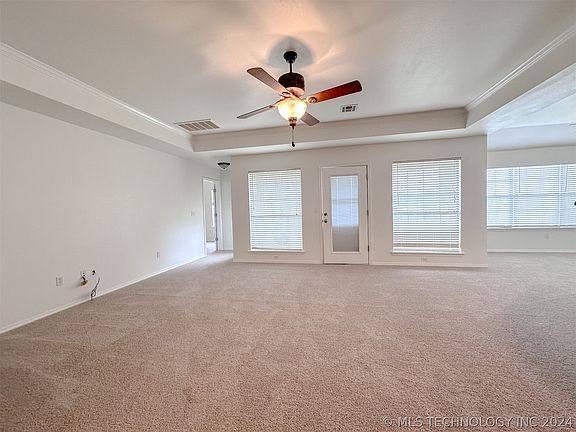 This adorable property is located in a beautiful neighborhood just off Highway 75 in Jenks Schools. Featuring brand new carpet and paint, it is sure to impress! The open concept living, and spacious kitchen makes this the ideal home for entertaining. The large formal dining would also make a great office space or playroom! The primary suite is separate from the other bedrooms and includes a large bathroom, separate vanities and a spacious walk-in closet! Just minutes from Tulsa Hills shopping center and Main Street Jenks!!! This one is a MUST SEE!