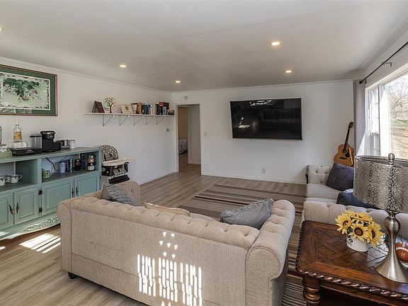 Move-in ready renovated home on park-like lot with gated access to Main Street. Nearly 1 acre lot has beautiful mature trees, pad for a barn/garage, pergola, mini barns & the convenience of being in town with amenities & near the interstate for commuting, but still on a private setting. The home features a large living room with picture window looking out on the yard, open-concept dining, beautiful kitchen with white cabinets & newer appliances, sunroom, laundry room, remodeled full bathroom with tile surround, & 2 bedrooms. Vinyl plank flooring throughout, modern light fixtures, covered back porch, basement, newer windows, newer exterior siding & trim.