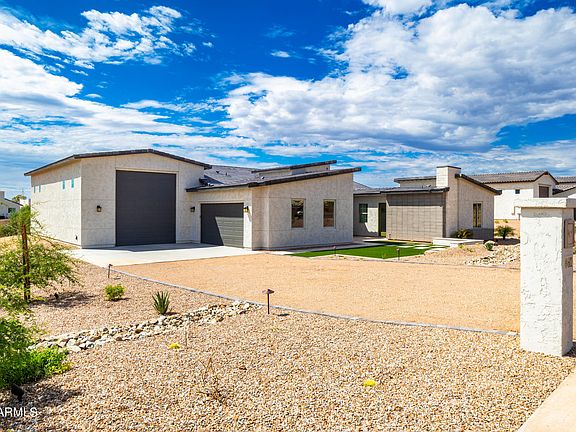 Calling all car enthusiasts! 2 Car garage plus a 47x23 fully finished Ultimate RV Garage with 400-amp service, 50 amp breaker for tools or electric car, DOUBLE 14 FT TALL RV DOORS, 16ft ceilings, drain, hose bib and more! Quick Move In home at Arroyo Vista Estates, a gated community with unforgettable views of the Superstition Mountains. Multi-Gen plan- private suite, bedroom and sitting room with private full bath and kitchenette with private door to the courtyard. The gourmet kitchen and atrium sliding glass doors. Design features include 8x32'' plank tile everywhere but the bedrooms, custom shower and bath tile surrounds. Fully landscaped front yard, and fully fenced backyard included.