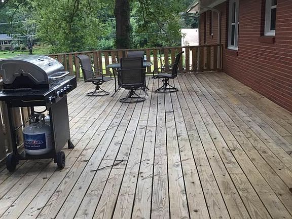 Sprawling Ranch in Garner! 3 Bdrm 2.5 Ba w/1572 sf, fantastic updated kitchen w/SS counters, SS appliance & tiled backsplash! Tiled bathrm & utility rm flrs. Lg lot w/fncd bkyrd. Over-sized deck w/a wonderful brick-oven grill/fireplace for family gatherings/BBQ's. Brick wlkwy leading to an abundance of storage under house w/a spec stge area for your outside gas powered tools under the deck! High efficiency gas heat/AC 2.5 yrs old. Description alone isn't enough! Bring your buyers to see for themselves!