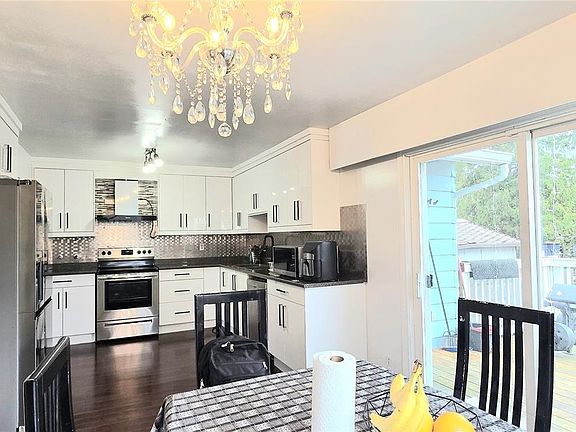 Defined dining spacePlenty of cabinetryStorage under the stairsThree generous size bedroomsLarge fenced private backyard