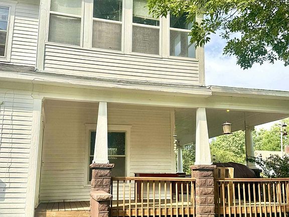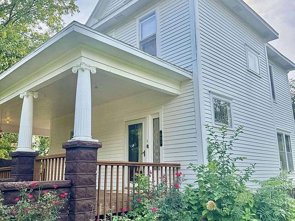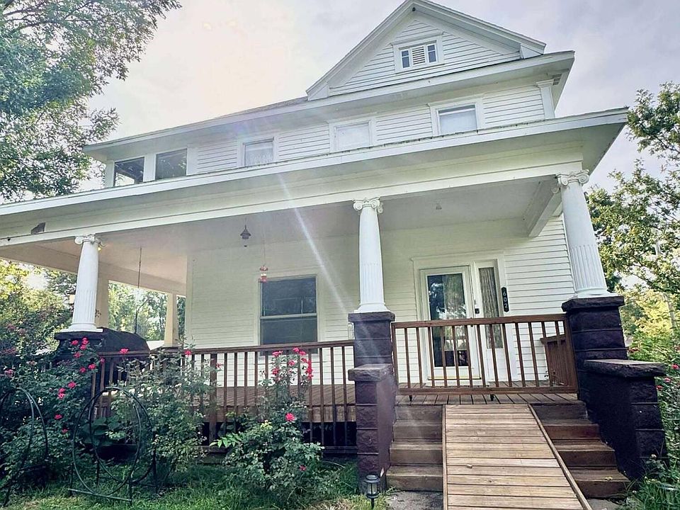 This charming Victorian home is situated on a spacious corner lot, offering excellent curb appeal and additional privacy. The property features two detached garages, ideal for storing extra vehicles, providing additional storage, or serving as a workshop. There are mature shade trees that provide a tranquil outdoor setting, ideal for relaxing or entertaining. Inside, you'll find beautifully preserved original woodwork, intricate moldings, and period details that add timeless character to the space. The inviting living room boasts a cozy fireplace, creating a warm focal point for gatherings. The home features four generously sized bedrooms and two full bathrooms, providing ample space for family or guests. Call to see this one today.