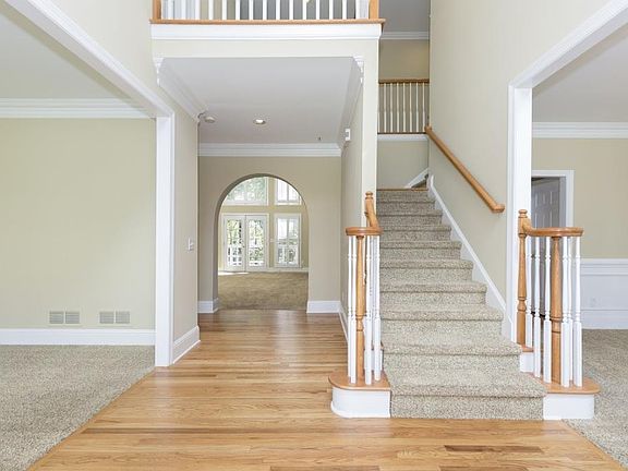 - Interior: 10 ft+ Ceil Main, 2-Story Foyer, Entrance Foyer, Trey Ceilings, Wall/Wall Carpet, Bookcases, 10 ft + Ceil Lower