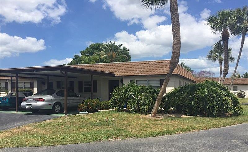 Back on Market - buyer did not qualify. All inspections done! Great opportunity to own this lovely remodeled end unit in the friendly 55+ community of Park Acres! Cooking is a breeze in this nicely updated kitchen with plenty of cabinet space and desk area. Newer appliances include a smooth top electric range. Ceramic tile flooring in the kitchen and bathrooms and berber carpet flooring throughout main area and bedrooms. Raised vanities in both bathrooms for easy use, wall tile in the updated showers and no-slip flooring in the master shower and a tub in the guest bath. The glass enclosed lanai gives you plenty of room for an office, sitting room or craft space! Peace and quiet are yours with a double insulated common wall buffering any noise. Pull right up to your front door and park in your carport. Your guests are welcome with extra parking nearby. Furniture included for your convenience! All of this and pet friendly as well! Make yourself at home in this well-located community that is complete with clubhouse, pool, card rooms, library, pool table, large screen TV and shuffle board courts. Perfect for winter getaway or full time resident!