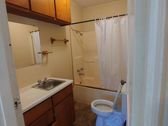 1 bed, large utility room can be used as second bed room or hobby room. 1 ba with shower/tub. New rugs in living room and the bedroom. Gas hot water, heat, cooking. Circuit breakers for newer electric service. Storage on site. Off street parking. Application link is through National Tenant Network-need email to send link. Drive by first to view from outside and the area and if still interested, reply to see inside. Reply with phone # for direct contact as is advised for safety. Will not reply unless direct contact can be made as is recommended for safety. Thank you for understanding. No pets. Water and sewer covered. Storage room. Last month rent
