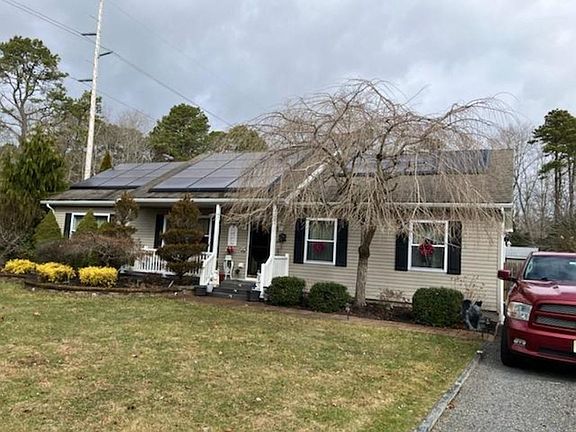 Lovingly cared for home offering new windows, vinyl siding, solar panels owned by seller and 2 car detached garage. The electric bill for this home runs from $0 to $10 per month. Ample size living room with plenty of natural lighting leading to a modern kitchen with an abundance of cabinets, a stainless gas range and dining area. Open floor plan to family room and two bedrooms beyond that. One bedroom is currently being used as a craft room and another is a spare room. The primary bedroom is on the other side of the home and has a large master bath and walk in closet. The septic is pumped every two years. Gas water heater is 5 years old. Natural gas FWA condenser was new approximately 2-3 years ago. There is a private three season room off the family room and an open patio off of that. The large fenced rear yard will accommodate all your family gatherings or pets needs. Nicely landscaped with sprinkler system. This is a must see home! Put it on your priority list. Appointment only.