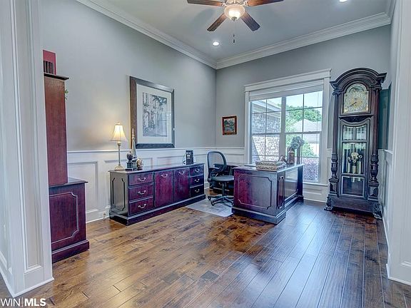 Situated in the popular Old Battles Village Subdivision in Fairhope, this custom built home by Truland comes with four bedrooms and three bathrooms. Multiple upgraded features include multiple tiled showers with frameless doors, custom wet bar area/butler's pantry, surround sound speakers in living room, 2 separate water lines with one dedicated for the irrigation system. Home also comes with under countered lights, led lights in all areas, custom cabinets over toilets, and a dedicated gas line off the back patio for gas grill as well as a screened in porch. The open split bedroom floor plan is highlighted by a gas fireplace and crown molding throughout. Close to the Grand Hotel, Lakewood Golf Course, and Mobile Bay as well as a short distance to the heart of downtown Fairhope.