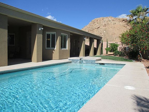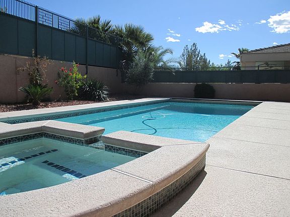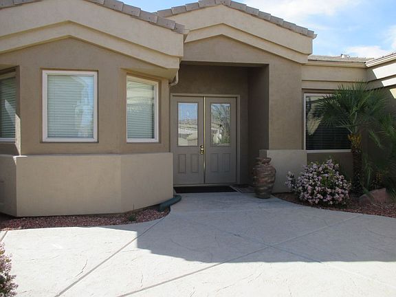 This lovely home in the gated community of Lakeridge offers a combination of features rarely found under one roof. From the front yard with its water feature, casita, and courtyard, through the 2650 S.F. main house with its 700 S.F master suite and attached 1300 S.F. garage, to the secluded backyard and its sparkling pool/spa and two covered patios, this property will not disappoint. Along with the master and its huge walk-in closet, the home comprises 2 guest bedrooms, 2 baths, a den/studio, living/dining room and large kitchen with granite countertops and walk-in pantry. The backyard is set-up for year-round entertaining, with easy access to the pool/spa and two patios from the master, living room and guest bedroom. Guests will enjoy the comfortable casita with its full bath and ample room. The garage, fully lined with cabinets and drawers, will easily accommodate 3 cars/trucks. This wonderful property represents a truly great value in Mesquite.