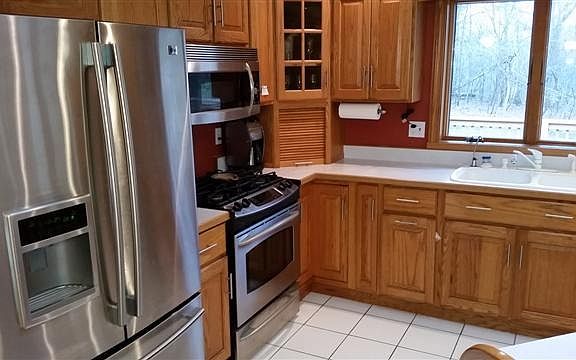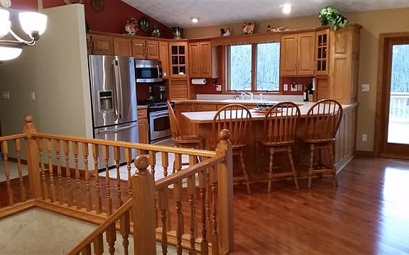 One of a kind quality built ranch home in park like 4+ acre setting. Over 2600 sq ft of living space on each level. Vaulted ceilings, skylight, incredible master bedroom suite. 3 fireplaces. Custom built John Martin kitchen, doors and trim throughout. Walk out lower level. 3 spacious decks and large patio area to relax and entertain on.
