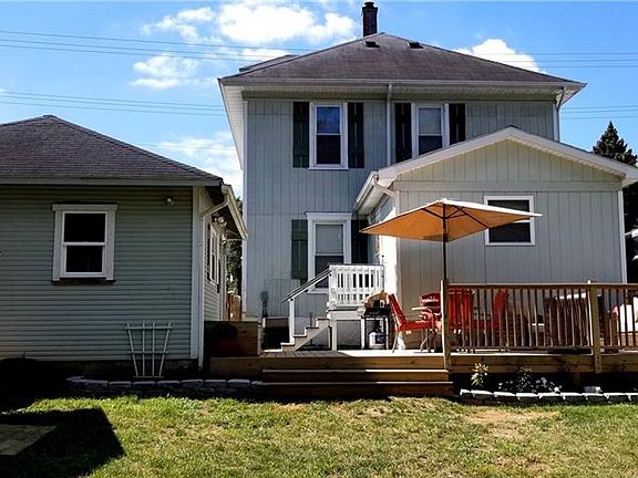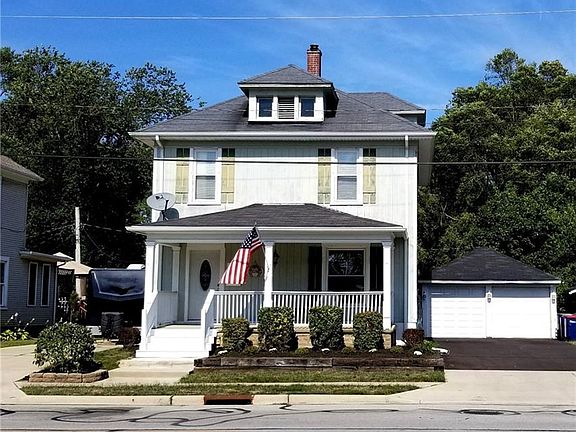 Great house, large bedrooms and closets with many updates. Updated in 2009 windows, roof, interior and exterior doors, laminate floors, new light fixtures, tile, crown molding. Renovated kitchen to include cabinets, counter tops, stainless steel appliances. An addition was done to add separate laundry room and a full bath. Since that time they've added shelving and a new back splash in kitchen. There are new steps at the entry with updated front porch railing as well as new paved driveway to add curb appeal. There is a large deck from the house to the detached garage with a storage bench for additional seating. Large, deep backyard with river to rear of the property, past the tree line and fence.