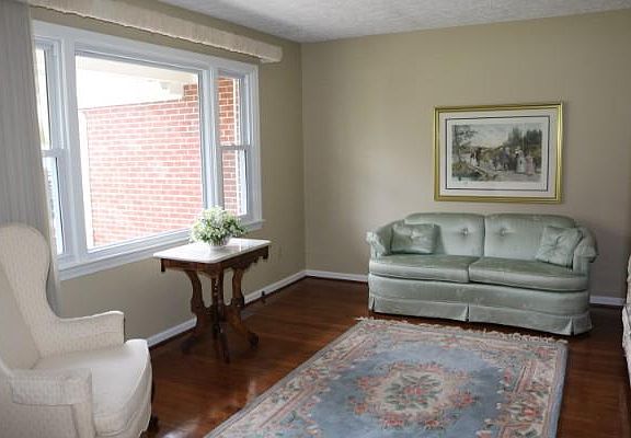 Immaculate brick ranch with beautiful hardwood floors, formal living & dining, 2 family rooms, 3 full baths, private patio, storage building, full basement, level lot, and 1-car garage! The kitchen features solid wood cabinets, Corian counter tops & sink, an island, new refrigerator, & dining area with Buck stove for chilly mornings. The basement offers a private bedroom & bath, den or office/game room, & workshop space with double doors to the outside. The paved drive is wide enough for multi-