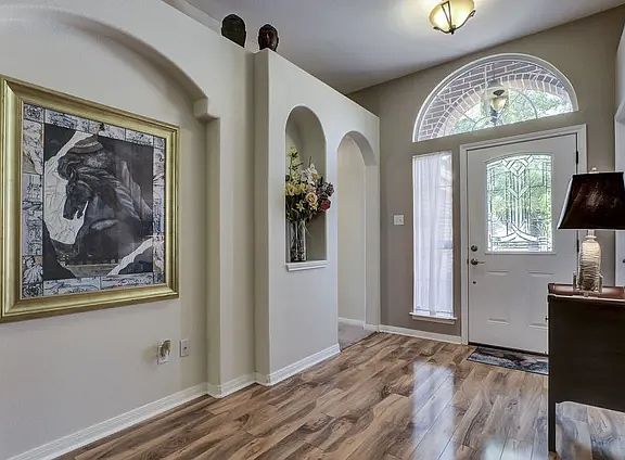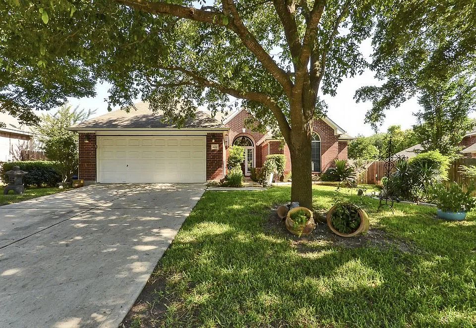 Cozy home in a family neighborhood next to schools. Charming 3 bedroom 2 bath house with fenced yard. Mother-in-law plan. Open concept with sweeping arches. Laminate flooring with carpet in the bedrooms. Nice covered back porch. Access to community pool. Great location and easy access to both IH 35 and SH 130. All appliances provided in the home. Gas fireplace. Small pets ok with deposit. Renter is responsible for all utilities and maintaining the yard. One year lease. No smoking allowed.
