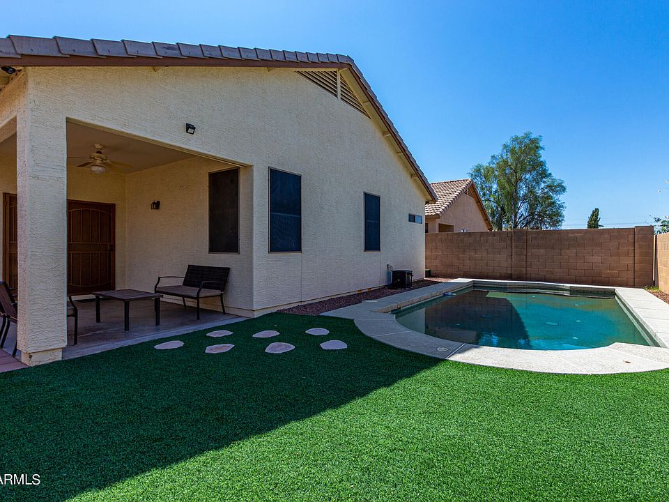 This adorable single level home in the beautiful community of Coldwater Springs showcases 1,722 sq ft, 3 beds, 2 baths, 2 car garage, open kitchen to great room and separate family room for entertaining. The backyard features a gorgeous sparkling pool, artificial turf, and an extended covered patio. Both the front and back doors have recently installed security doors to allow crosswinds throughout the home during cooler temperatures. Recently installed new ac unit, new pool pump, and fresh exterior paint. Conveniently located near I-10, plenty of shopping and dining nearby. Multiple options for private schooling close by as well. Schedule your showing today!