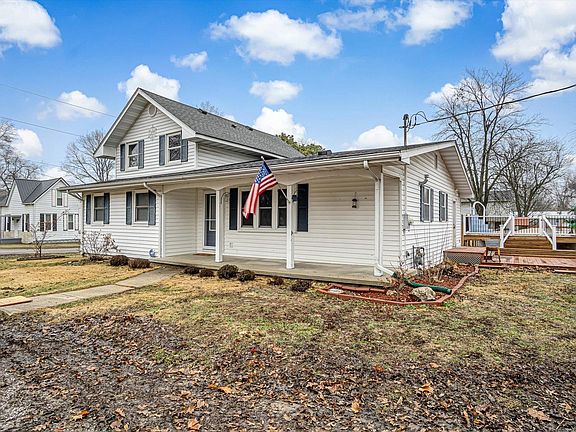 Welcome to this charming 1.5-story home situated on a corner lot. Featuring three bedrooms, including one conveniently located on the main floor, and two bathrooms, this residence provides both functionality and comfort for everyday living. Step into the updated kitchen, where solid surface countertops, newer appliances, and a spacious center island await. The fresh interior paint throughout the home ensures a move-in ready abode, allowing you to settle in with ease and start creating new memories. Outside, enjoy the warm summer days lounging by the above-ground pool, surrounded by a stunning deck that's perfect for outdoor gatherings and relaxation. The partial fencing adds privacy to the backyard oasis, creating a serene retreat for you to unwind after a long day. Additionally, the detached two-car garage with electric and concrete floors offers ample storage space and convenience for parking your vehicles or pursuing hobbies.
