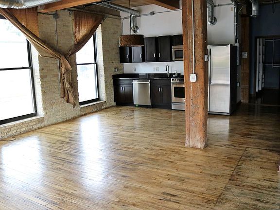 This stunning 1 bedroom 1 bathroom apartment features exposed Cream City Brick walls, open exposed ceiling, hardwood floors, and very large windows. But that is only the tip of what is part of this great space 12 x 24 outdoor covered deck, The kitchen features new 7 ft kitchen Island (not shown in pictures yet) granite counter top, Stainless Steel appliances (Stove, huge fridge, microwave, dishwasher) and big living area. Bath room features large shower, Bed room can fit a King size bed with room to spare for other pieces. Walk in closet next to bedroom. Laundry is in unit. Unit comes with 2 off street gated parking spots. Building features a security system through out with your own code. Close to downtown and 2 short blocks to many restaurants, blocks from Harley Davidson Museum. Only serious inquiries call Wally for appointment for showing. 414-254-8885 Credit check is done on any prospective tenets.