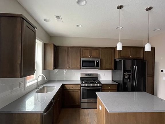 3 bedroom 2.5 bath house, 1555sf, 2 car attached garage. Kitchen features stainless steel appliances, which include a refrigerator, gas range/oven, dishwasher and microwave. Large island provides plenty of prepping area, tile counter tops, brushed nickel finishes. Kitchen Nook has a slider that leads to a fenced backyard. Wood floors downstairs. Carpet upstairs. Master suite has a large walk in closet, double sinks in the bathroom with a large walk in shower. Loft area at the top of the stairs, 2 additional bedrooms and a full bath. Washer/Dryer included. Pets OK. HALF OFF FIRST FULL MONTHS RENT