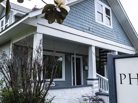 Endless possibilities and great location! Charming original details maintained while many updates have been completed. Spacious 5 rooms, 1.5 baths, plus kitchen area. Tall ceilings, large windows, hardwood floors, and detailed trim. Upper level storage. Ideal for work/live lifestyle, business suites, tea room, and much more. Parking located in both front and back of property. Located one street off Main! 8x10 storage building included.
