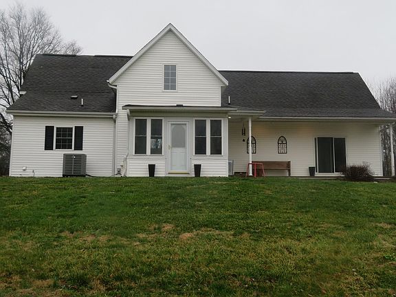 Recently updated home featuring an open floor plan, new paint & light fixtures, hardwood floors, kitchen w/custom oak cabinets, spacious living room, sunroom, half bath, and a large master bedroom w/full bath on the main floor. Upstairs you will find 2 more bedrooms and a full bath. Outdoors you can relax on the nice covered porch & patio, or work in the 2-car detached garage w/bath, heating & air. All this on 2.28 acres on the edge of town.