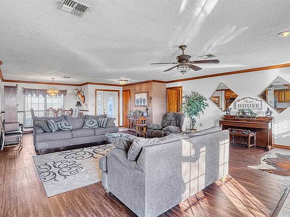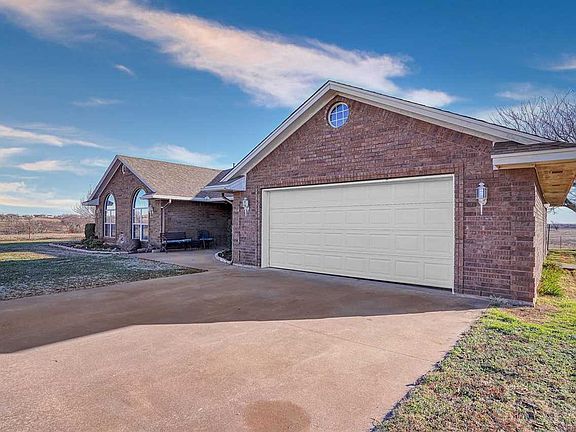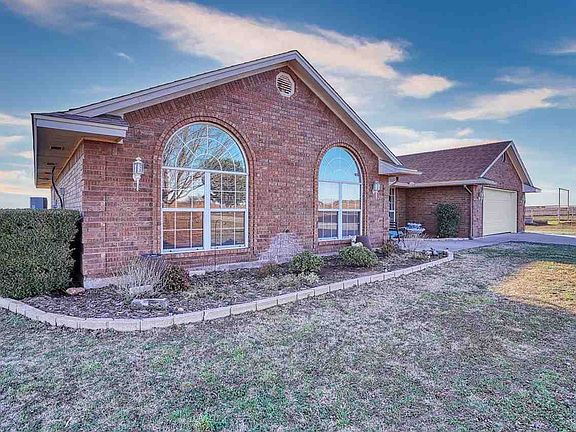 Wonderful one owner custom built home on approx. 4.3 acres. 3 Large bedrooms, 2 full baths, 3 car garage plus 24x36 metal barn & pipe corals for livestock. Very open floor plan, formal dining area, huge living room, built-in desk, wood burning fireplace with blower. Great kitchen, breakfast bar, pullout cabinets & trash cabinet, stainless steel appliances, new dishwasher. Lots of closet storage and pantry. Large primary bedroom with sliding doors to extended large patio, whirlpool tub and separate shower, double sinks, big walk-in closet. Amazing views of sunrise and sunset. LVP floors in formal dining, living area & hallways, and primary bedroom. Tile floors in kitchen & baths. Two room have carpet, 2 bedrooms on front have high ceilings. Large windows. 3 car garage, 2 overhead doors & 1 front & 1 back. New CH&Air Dec 2022 and so much more.