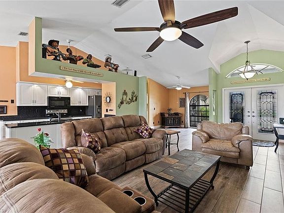 *Wow! Must see!!! Be the proud owner & enjoy Florida-style living in this amazing, custom, one family owned, gulf access property that boasts over 240+ ft of seawall w/southern exposure! Relax & entertain guests in the huge, outdoor screened lanai area complete w/ heated pool, spa & grilling station overlooking scenic intersecting canals. Enjoy private dining on the spacious, concrete deck that sits directly on a canal allowing for panoramic views, amazing sunsets, dolphin watching, sun-bathing, seawall fishing & watching boats pass by. Boaters, pack up your cooler & lower your boat from the 10k lb lift w/ just a "Two Cocktail" boat ride to the river & out to the Gulf! This Fabulous 3BR /3BA /2 car garage home sits on a peaceful, corner, over-sized, SW exposure lot & comes with a 12' x 9' Bonus room w/ a private entrance... perfect as a media room or in-law suite. This "Open" floor plan property features many upgrades including: Huge stone master bath walk-in shower, custom plank tile flooring, large circle driveway, plenty of backyard space for your pets & is conveniently located to fabulous Cape Coral restaurants, nite-life & shopping. *Check out the Zac Brown 3D VIRTUAL TOUR!