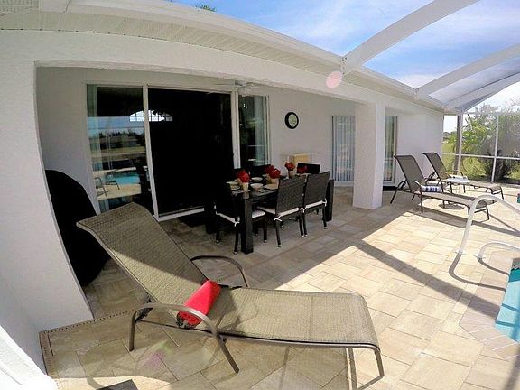 Beautiful TurnKey (fully furnished) waterfront home (with Captains Walk) - 3 bedrooms/2 full baths, large electric heated pool with solar blanket and screened lanai. Large Kitchen with granite counters and high bar. Master has large walk in closet, large bathroom has dual sinks, dual head shower, with separate spa tub. Large HDTV in family room, master bedroom & guests bedrooms, LP gas grill, lounge chairs, His & Her bicycles plus kids bike, full size Pool Table, Storm Shutters, and much more! Gulf access boat ramp less than 5 miles away! New 2018: 3D Shingle Roof, Mattress, Chairs, Ceiling Fan in Master BR, All Smoke Alarms, Portable Garage Air Compressor, Desk Chair and Printer. New 2017: Floratam Lawn, LR Furniture, Kitchen Faucet and Garbage Disposal, Pool Pump. New 2016: Furnace and A/C, Pool Pavers, Painted Exterior House, Electric Pool Heater. New 2015: Concrete Captain's Walk, Pool Screening and House Screening. Home is currently a successful vacation rental with bookings through April 30, 2019. New owner must assume all rental contracts through April 30, 2019, and will receive all rental income after closing date. SCHEDULE YOUR SHOWING TODAY!