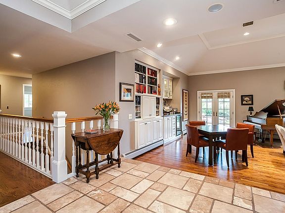 This beautifully remodeled ranch on the coveted Shadycroft Lane has a classic traditional style with an open and bright interior and a strong connection to the outdoors. It is simply sensational! Meticulously maintained & beautifully renovated with careful attention paid to every detail. High ceilings, elegant moldings, hardwood floors, plantation shutters; the sunny kitchen & hearth rooms have been completely remodeled with all the modern amenities & finishes including soapstone counters, an African Rioku wood island, and professional stainless appliances. The main floor luxurious master suite boasts a European spa-like 5-piece bath & private study. The indoor and outdoor living areas display pastoral views & a neighboring equestrian trail. The three sets of French doors lead to the outside from the living room, hearth/kitchen and master suite onto the flagstone terraces. Great outside entertaining area with an cozy fireplace, a bocce ball court, built in gas grill, & a green egg.