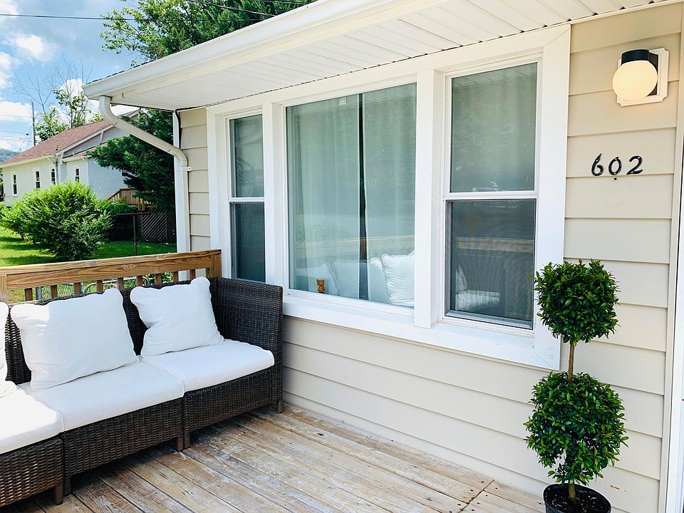 Newly renovated, light-filled, and spacious home on two levels, both with kitchens and living areas for privacy and independence. Listed as unfurnished, but available furnished (as pictured in video tour) for $4500/month. Great for families with nannies, work-from-homers, or multi-generational families. Dog-friendly with huge fenced yard walking distance to the restaurants, bars, and boutiques of downtown Belmont and downtown Charlottesville. Located in the middle of the city, yet set on a large, private lot on a private road. Light-filled, newly-renovated, gorgeous space with super-fast internet. Five bedrooms, two bright and newly renovated bathrooms (both with tub/shower combination). Upstairs you'll find three bedrooms, a full bath, and an open-concept, light-flooded chef's kitchen with gas range, wall oven, dishwasher, and dining area with mountain and city views. Also upstairs is an open-concept living room. Downstairs there are two bedrooms, a full bath, and a cafe kitchen with full-sized fridge, sink, microwave, and toaster oven. Also downstairs is a large living room/dining area. Laundry both upstairs and downstairs. Huge, completely fenced-in back yard. Plenty of off-street parking. Close to downtown, UVA, both hospitals. Super convenient yet private and quiet. Offered unfurnished, but can be rented fully furnished for $4500/month 6 month leases offered, but 1 year preferred. Dogs welcome- please, no cats. Parking in designated spaces only. No smoking in the house.