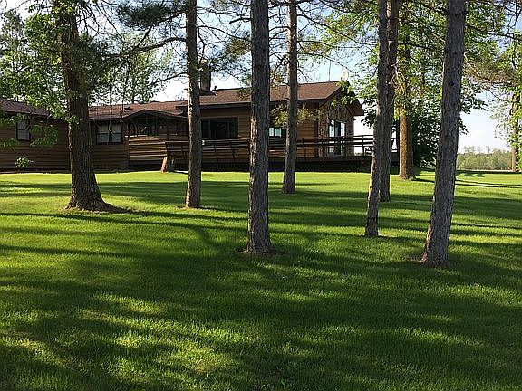 The PREMIER spot on Hill Lake ! Panoramic views from this beautiful ranch style home of this pristine lake setting and sugar sand lakeshore! Large room size and a huge vaulted ceiling living room with a massive Granite fireplace with a gas insert. New 40 year roof. Large 30 x 40 , 3 stall detached garage plus a 3 stall , 32x40 metal building! Great neighbors!