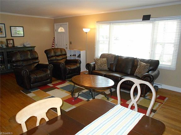 A MUST SEE! Move in ready home with low maintenance brick & vinyl exterior. Large back deck over-looking level, fenced back yard. Mature oak trees provide lots of shade. Original hardwood floor in living room & hall. Ceramic tile in kitchen & baths. Wood burning fireplace in living room. Bedroom 2 & 3 share Jack-n-Jill half bath. Partial basement has additional storage. Eligible for Guilford County and Core City down payment assistance. One year home warranty included.