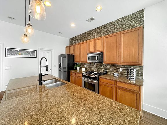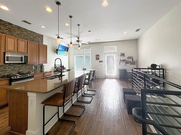 Best floor plan in City Commons. This one has a huge balcony as well as a 2 car tandem garage. You'll love the hardwood floors/smooth ceilings through out this spacious, open layout. Huge pantry in inviting kitchen. Plenty of room for a home office. Large primary suite w/luxury bath & a huge walk-in closet. The other bedroom has a private bath and tons of storage. There are 2 Juliet balconys. This complex offers a private dog park, charcoal grills and convenient visitor parking. South Main HD!