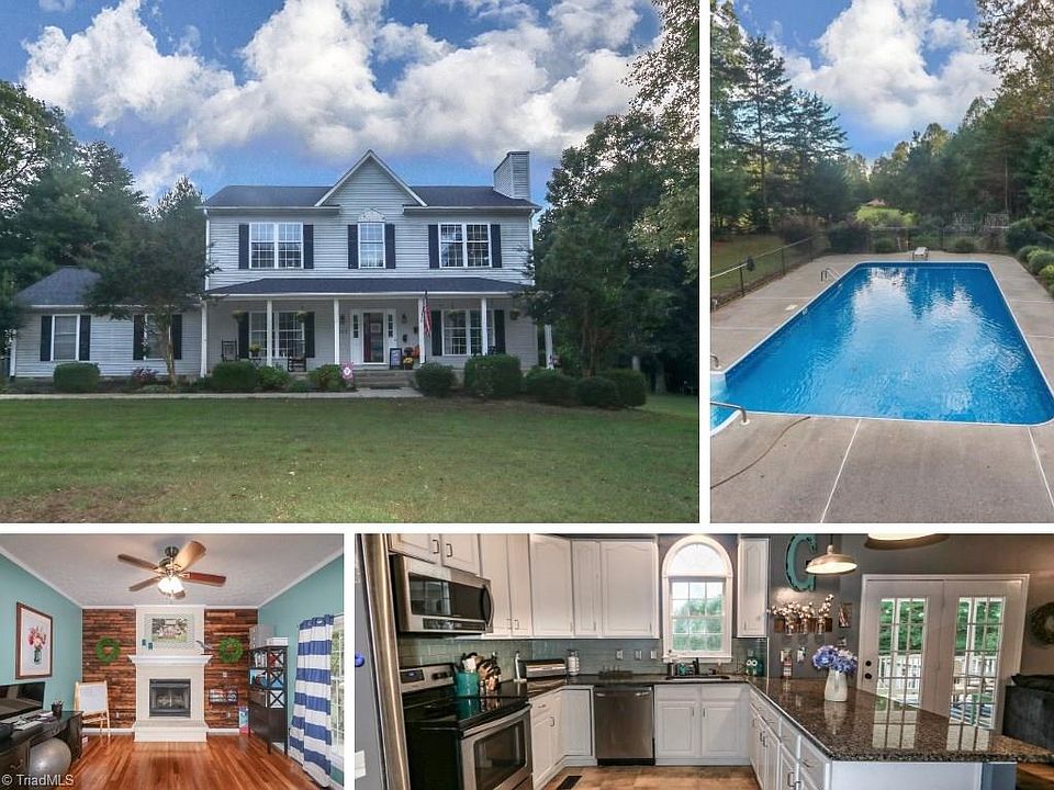 Perfect location, peaceful setting 5 minutes from I-77, Elkin School District, but no city taxes. 4 bed/3.5 bath, and additional space w/ living area, underground pristine pool, covered back deck. Enjoy the sound of bells daily heard throughout the neighborhood. New heat pumps, roof is only 3 years old, new hardwoods, new pool liner, freshly painted and move-in ready. This is a must see, schedule your walk-thru today!