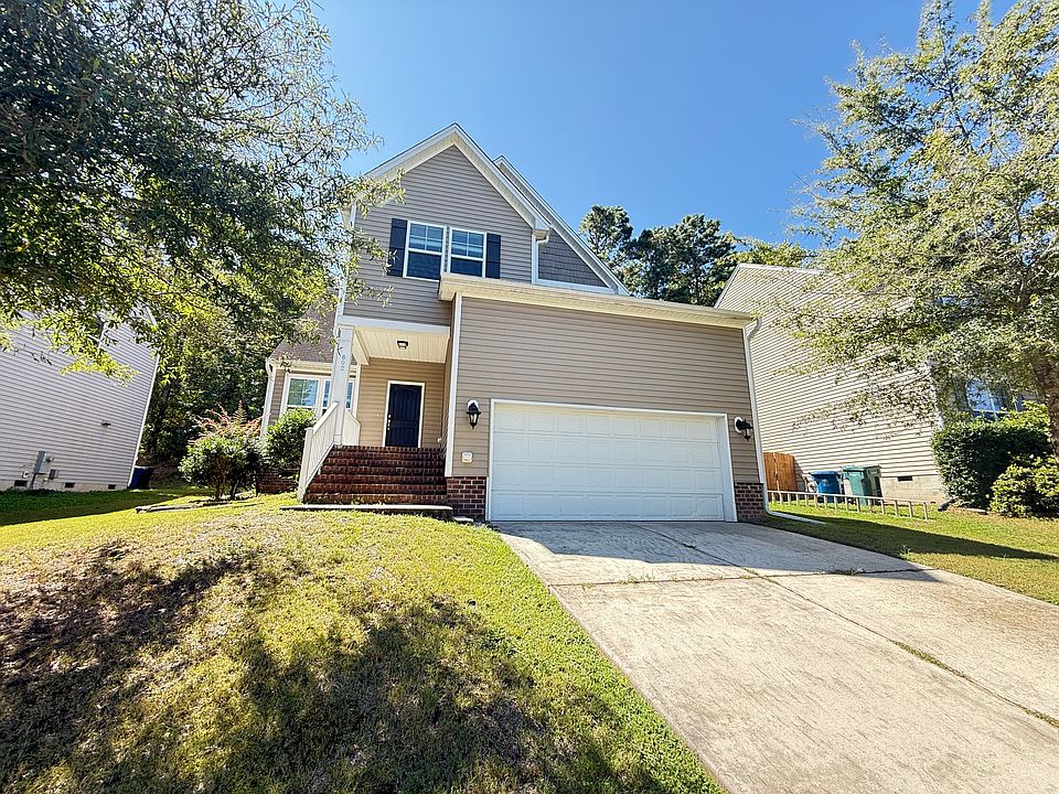 Upstairs, huge primary suite offers a walk-in closet and private bath with garden tub and separate shower. Two additional bedrooms and a full bath provide plenty of space. 2-car garage and a private backyard.