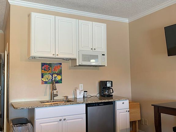Updated & furnished studio unit with king bed, living room, dining area and balcony overlooking the sound and the pool. Amenities include pool, dock and boat ramp (for owners), picnic tables, and more. Palm Suites is one of the very few Condotels that has it's own boat ramp plus a new Floating Dock with 8 boat slips, water & electric-awesome for owners with boats! Short walk to restaurants, the beach, ABC store, shopping and everything Atlantic Beach has to offer! Christmas parade goes in front of Palm suites! It does not get much better than this, income can pay for your trips to the beach! Where else can you own an island property for this price?!