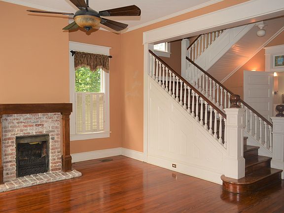 Loads of History and Charm Inside and Out! Beautiful Hardwood Flooring, Updated kitchen and baths, Den or Master Suite on Main Level, with additional bedrooms and full bath upstairs, 6 decorative fireplaces thru-out. Original staircase and many other original details remain in this historical home. Stained glass, great storage, Laundry Room. All appliances including Washer, Dryer and Refrigerator Remain. Detached Garage/Workshop, Fenced Yard, Patio, Circular Driveway, Alarm System & Bonus Room off upstairs master makes a great office, nursery or future walk in closet. A Must See.....Call Agent for Alarm Details.