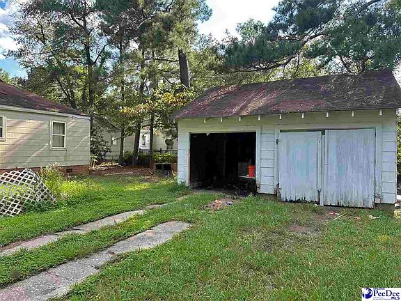 This corner lot property has tons of potential to put your custom touches on. The wooden wheelchair ramp attaches to the side door, making it accommodating and accessible. The property has unique wood wainscoting and crown molding, providing the depth and character of the room. The property features a living room, dining room, two bedrooms, one bathroom, and a detached garage. The living room includes a built-in bookcase and brick fireplace with a custom mantel. The hallway full bathroom separates the two spacious bedrooms. The bathroom was renovated in 2018 with a new walk-in shower, sink, and toilet. All the windows are energy efficient with double-hung windows. The Square D electrical panel was upgraded in 2018 to a 100-Amp service. The electric water heater and all three (3) exterior doors were replaced with 37'' steel-clad doors in 2018. The roof and the heating and air conditioning (HVAC) were replaced in 2019. The detached garage provides extra storage for outdoor equipment. The property is being sold as-is and only 42 miles from Myrtle Beach.