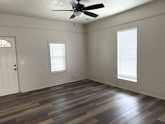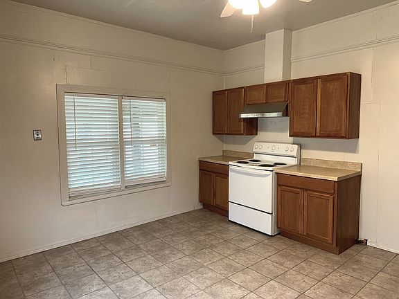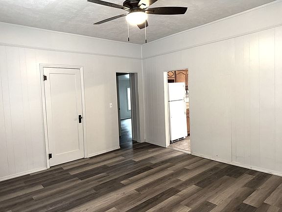 This charming stucco house with a covered front porch is located on the corner of Rainey and 5th Street. (Directly West of City Hall and Police Dept) Recently painted interior, new tile floors in kitchen and dining area and new countertops and backsplash in kitchen. Plenty of space in the kitchen for informal dining. Wall panel gas heaters and window unit AC. Yard is maintained by the owner. Tenants are responsible for all utilities. This is a no pets property.
