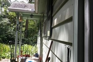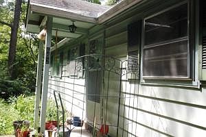 Very nice home with 1 BA/1 BA; large living room; dining room; 1 car carport; needs a new bath tub; lots of flowers, vines and trees which make it secluded from the street; 4 yr old heat pump; wood deck; fridge stays; newer part of home was built around 1989; seller does not know the age of the older part; has vinyl siding.