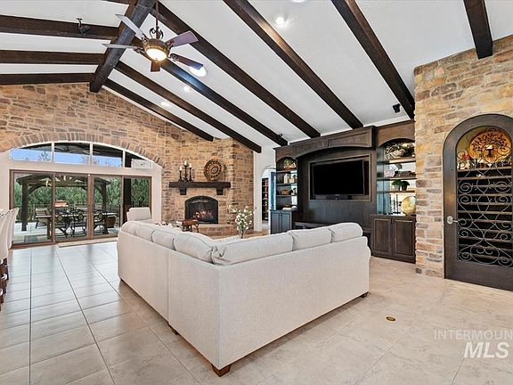 Location Alert!! Step into the charm of this beautifully designed Spanish-style single-story home, where elegance meets comfort. Featuring soaring ceilings with rich wood beams, an open-concept layout, and graceful arched doorways, this home offers an inviting and spacious feel. Nestled on a private lot with stunning water views, it provides a serene escape while being located in a highly desirable neighborhood. Walking distance to the river, greenbelt, tennis/pickleball court, community clubhouse and pool. Whether you're enjoying the tranquil surroundings or entertaining in the seamless indoor-outdoor living spaces, this home is a true masterpiece of timeless design.