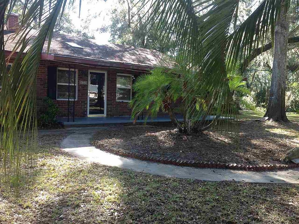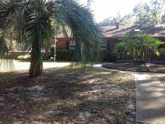SPACIOUS BRICK HOME ON 6 LOTS. NO HOA FEES. This home has an open living area,(over 32 feet with brick fireplace ,wood floors. Kitchen area with seating. 3 bedrooms and 2 baths. A glass enclosed solarium leads out into the screened heated (32X16) pool and cabana. The property extend corner to corner and include 2 sheds not guaranteed.
