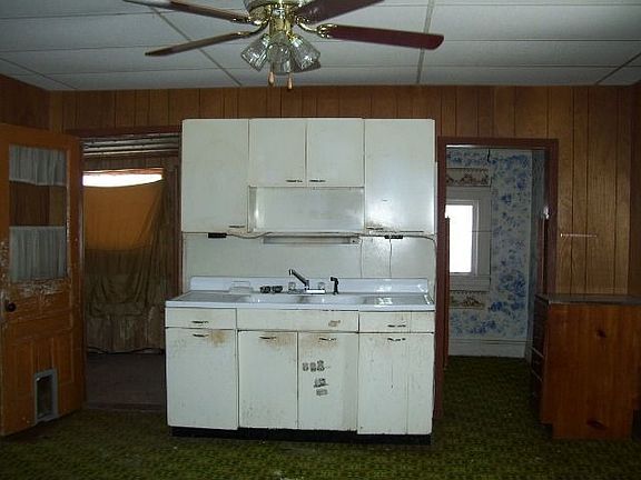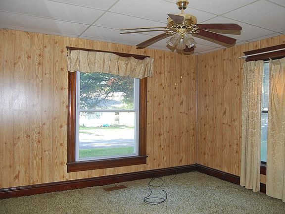 Exterior Features: Outside the homes sits on a nice corner lot and features vinyl siding, covered patio, and some vinyl replacement windows. 1 car detached garage. 60x140 Corner Lot. Interior Features: This home needs lots of TLC but has potential! Some of the homes features include beautiful woodwork, pocket doors, formal dining room, large pantry, main floor Laundry, enclosed front porch, 2 main floor bedrooms with 2 more on the second floor and lots of storage upstairs! The basement is in really bad shape, it was flooded last winter/spring. A termite inspection was done on the home and garage, It came up clean on the house but the garage does have termites. The pipes are busted and the floors are very uneven. Front porch appears to have a roof leak in the south east corner