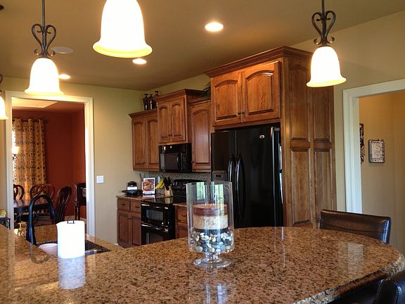 You will have all the space you need with 4 garages, 5 bedrooms, 3.5 baths and 3 level living space.The kitchen has granite countertops with a breakfast bar that seats up to 7. The living room has 18 ft. box ceiling and a towering wall of windows looking over the pond below. The master bath has an 8 ft walk-in shower with 2 shower heads. The bar area in basement features concrete stained countertops and Knotty Alder cabinets. The storage area in the basement also has shelving. The home also boasts lots of extras, Eco Water Filtration System, coffer ceilings, sprinkler system, Nuvo speaker system throughout the home, suspended concrete deck with aluminum railing and stairs. On of the owners is a licensed Realtor in Missouri.