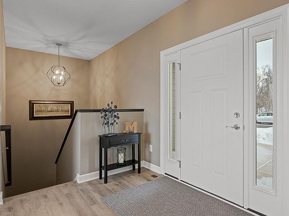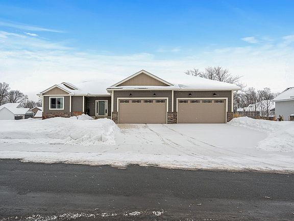 Custom built in 2021 by 5-star-reviewed Price Custom Homes on premium corner lot. New neighborhood but surrounded by panoramic views of mature trees and bluffs over the Crow River. Designer touches of a professional landscape architect with dry rock riverbeds, MN wild grasses, flowers and a 5-zone in-ground sprinkler system. Completely finished (insulated/sheetrock/paint), 4-car garage with 10 X 20 storage space and over-sized concrete driveway. Plumbed with hot & cold water for car washing with drain and 2 breaker panels to allow an electric charging station or future garage furnace. Enjoy the views on a maintenance-free, 10X16 deck with Sunsetter awning controlled by remote control. Durable architectural Landmark Series with Lifetime Limited Warranty shingles. Custom woodwork, stainless steel Whirlpool appliances, and fireplace. One level living with laundry, 2 beds and 2 baths on main level. Walk-out basement with 2 beds, 1 bath, family room and extra storage room.
