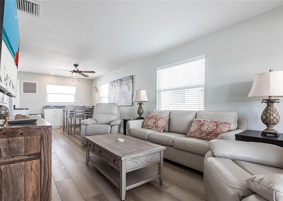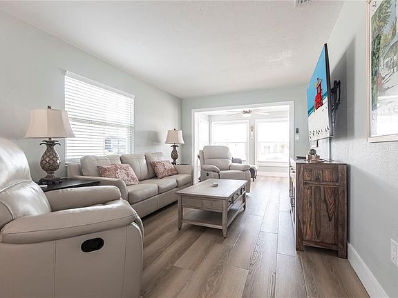 Toes in the sand and sunshine on your shoulder welcome home to the spacious one-bedroom Villa 35 at Aloha Kai. This beautifully updated villa features granite countertops in both the kitchen and bath, while the bedroom offers ample space and a large closet. The open-concept layout extends to a front porch enclosed with windows and blinds, providing additional living space and privacy. Located on Siesta Key, a popular barrier island on Florida's West Coast, Aloha Kai is a family-friendly gated resort community nestled in the heart of Crescent Beach the number one rated beach in the continental United States. Known for its bright white quartz sand and emerald-green waters, Siesta Key is one of Florida's premier vacation destinations. The stunning three-mile stretch of Crescent Beach and the clear waters of the Gulf of Mexico captivate even the most seasoned travelers, offering soul-soothing walks and some of the most magnificent sunsets you'll ever see. Aloha Kai is the perfect setting for a laid-back beach vacation, inviting you to lounge under shaded beach pavilions or relax by the largest pool on Siesta Key.