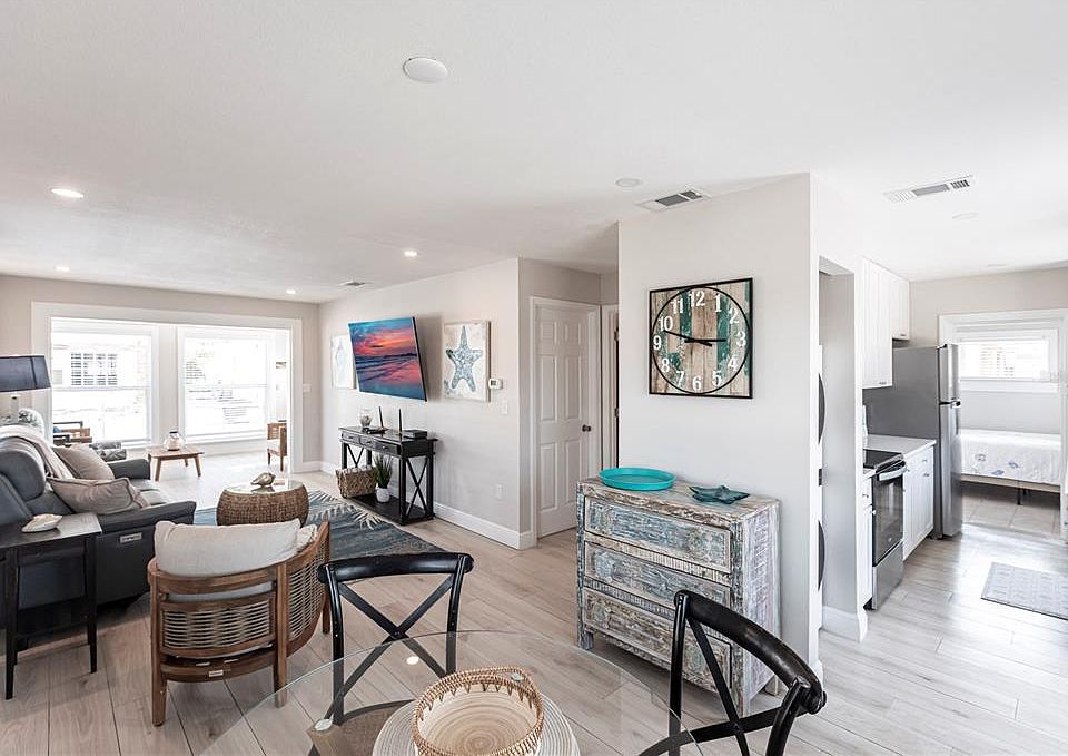 Light, bright, and beachy Villa 56 at Aloha Kai welcomes you with its retro charm and casual coastal elegance. The inviting interior is enhanced by an updated bath that offers a spa-like retreat, perfect for unwinding after a sun-soaked day at the beach or an afternoon exploring the shops and restaurants in town. In the evening, enjoy a peaceful sunset stroll along the shoreline, then return to your villa to relax on the porch with your favorite drink in hand, soaking in the balmy coastal breeze. For added convenience, the villa includes a washer and dryer. Located on Siesta Key, a beloved barrier island on Florida's West Coast, Aloha Kai is a family-friendly, gated resort community in the heart of Crescent Beach ranked the number one beach in the continental United States. Known for its powdery white quartz sand and shimmering emerald-green waters, Siesta Key is one of Florida's premier vacation destinations. The breathtaking three-mile stretch of Crescent Beach and the crystal-clear waters of the Gulf of Mexico create the perfect backdrop for soul-soothing walks and unforgettable sunsets. Aloha Kai completes the experience with shaded beach pavilions and the largest pool on Siesta Key, offering the ultimate setting for a relaxed, laid-back beach vacation.