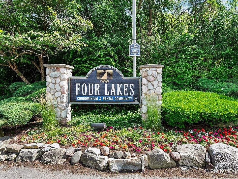 Welcome to The Four Lakes..... Stunning Views. Spring, Summer, Fall & Winter the views. Enjoy your 22 foot patio. 1 assigned parking spaces included in the price is spectacular. In home washer & dryer. Wood burning fireplace w exposed brick creates a warm and comfortable ambiance. Four Lakes offers...swimming pools, tennis courts, ski hill, volleyball courts, bar and restaurant, walking and jogging trails, frisbee golf course, convenient store and a gym onsite with low and flexible memberships. Located near commuter train & major highways.