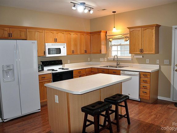 Welcome home!!! Awesome location close to dining, shopping, hospital and more. Easy commute to Charlotte, Ballantyne and other areas only 5 minutes from 485. Spacious 2 bedroom and 2.5 bath TH with wood laminate flooring on main level, tile in bathrooms. Home boasts a flex room which makes a great office on the main level. Home also has a LARGE kitchen with island, plenty of cabinet space and 2 pantries. Private yard which backs to a wooded area. Primary BR is a great size and has a big walk in closet. Secondary BR is a great size too. TH is wired for a security system and has a storage unit in the back. There are two assigned parking spaces. Neighborhood has an entrance to Stallings Park which has a playground, tennis court, walking trail and splash pad.