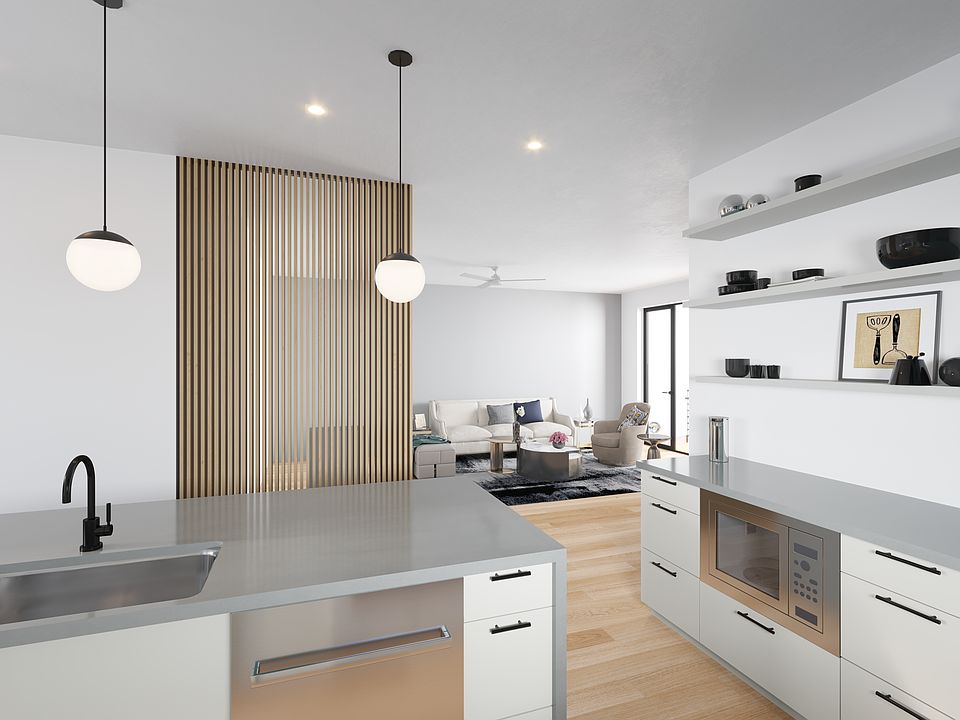 The Chelsea unit at HYPOINT, Residences by Urban ATX, is a stunning 3 bed, 2.5 bathroom home offering 1,595 sqft of spacious and airy living across three levels. Designed by Davey McEatheron Architecture and constructed by master builders Urban ATX, HYPOINT's modern contemporary style is a blend of stone, wood, and metal elements throughout the home. Each unit features a tandem two-car garage and an outdoor patio just off the living room was built for entertaining. HYPOINT, Residences by Urban ATX, offers new home buyers the opportunity to select from one of three custom finishing packages for their home. The different packages can include but are not limited to: the sink and bath fixture type in the home, lighting, tile in the kitchen and bath, and more.