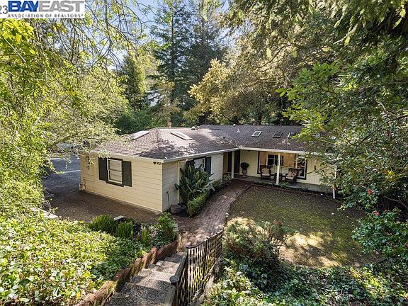 Private and lush setting. This lovely single story home has 3 bedrooms and 2 baths. Vaulted wood ceilings and stunning hardwood floors. Newly updated kitchen with stainless appliances and Wedgewood oven. Beautifully updated bathroom and freshly painted interior. Has a quiet backyard that opens to a creek surrounded by stunning trees. We are down the street from the Village & Thornhill Elementary, with easy access to the freeway