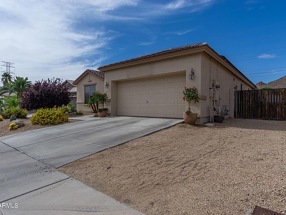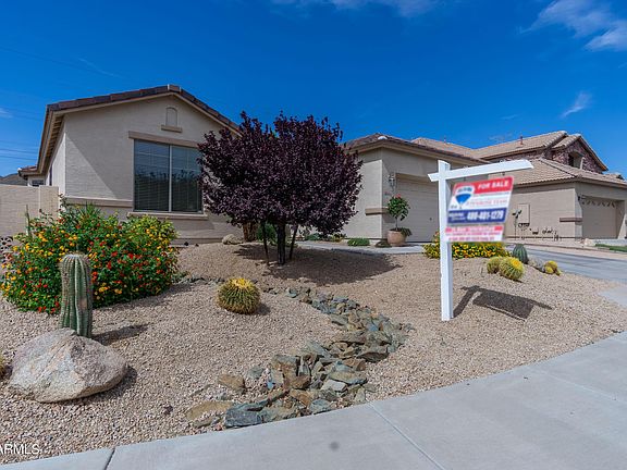 This beautiful ranch style home is located in the gated community of Mission Ranch, featuring 3 bedrooms + a den, 2 bathrooms, 2,264 square feet, and mountain views!! The home is only a couple miles away from the I-17 for quick travel times and near plenty of restaurants/entertainment options! The home includes 9ft ceilings, built in surround sound in the family room, 18'' tile floors, RV gate, laundry room sink, and tesla leased solar! With plenty of new upgrades like laminate wood floors in 2021, pool filter & pump replaced in 2020, exterior paint in 2020, and gas water heater in 2020!! The kitchen features stainless steel appliances, 42'' upper cabinets, Corian counter tops, and bay windows in the eat in kitchen area and in the master bedroom! Perfect backyard with a covered patio,
